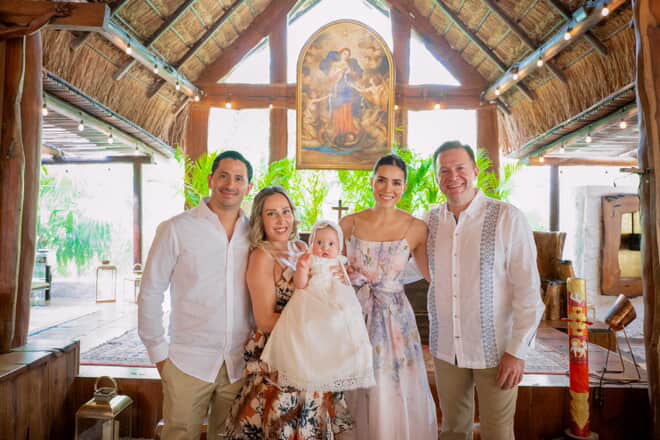 Cancún, Q. Roo —Rodeada del cariño de su familia y seres queridos, la pequeña Fabiana Taracena Robles recibió el sacramento del bautismo en una emotiva ceremonia celebrada en el Santuario de la Virgen Desatadora de Nudos, uno de los recintos más entrañables de Cancún.