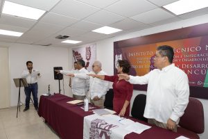 Bajo el lema “El cambio lo hacemos todos”, la Comunidad Politécnica en Cancún, rindió protesta de los nuevos integrantes de la mesa directiva 2024-2025, la cual quedó ahora presidida por la Ingeniera Arquitecta Zaida Cisneros.
